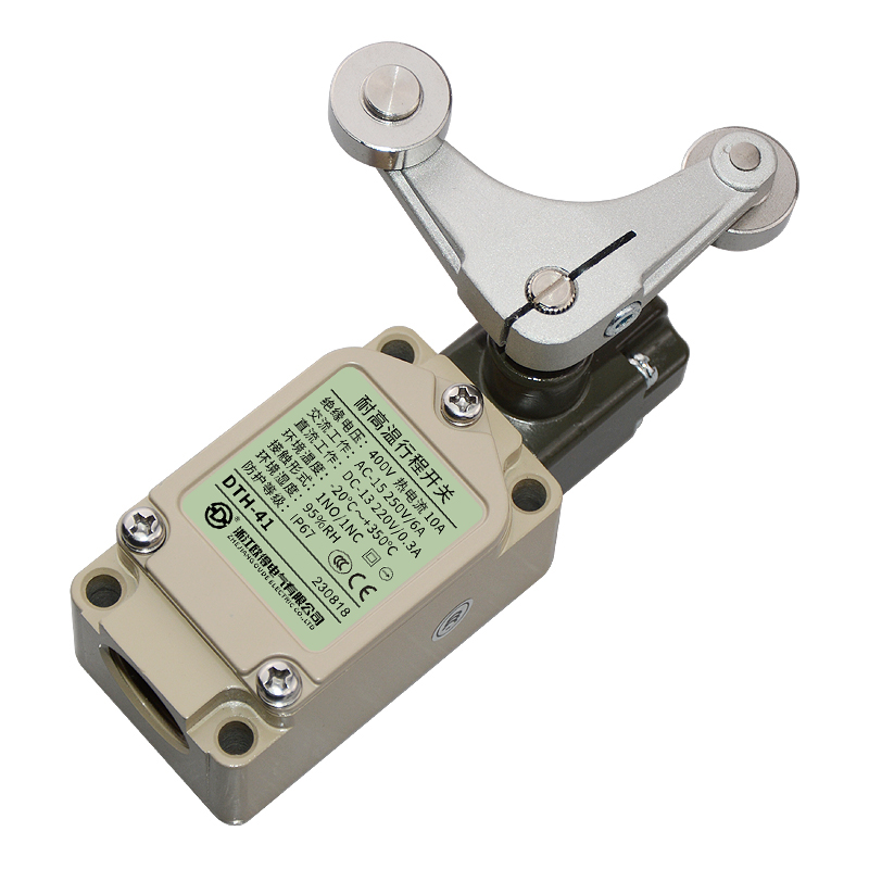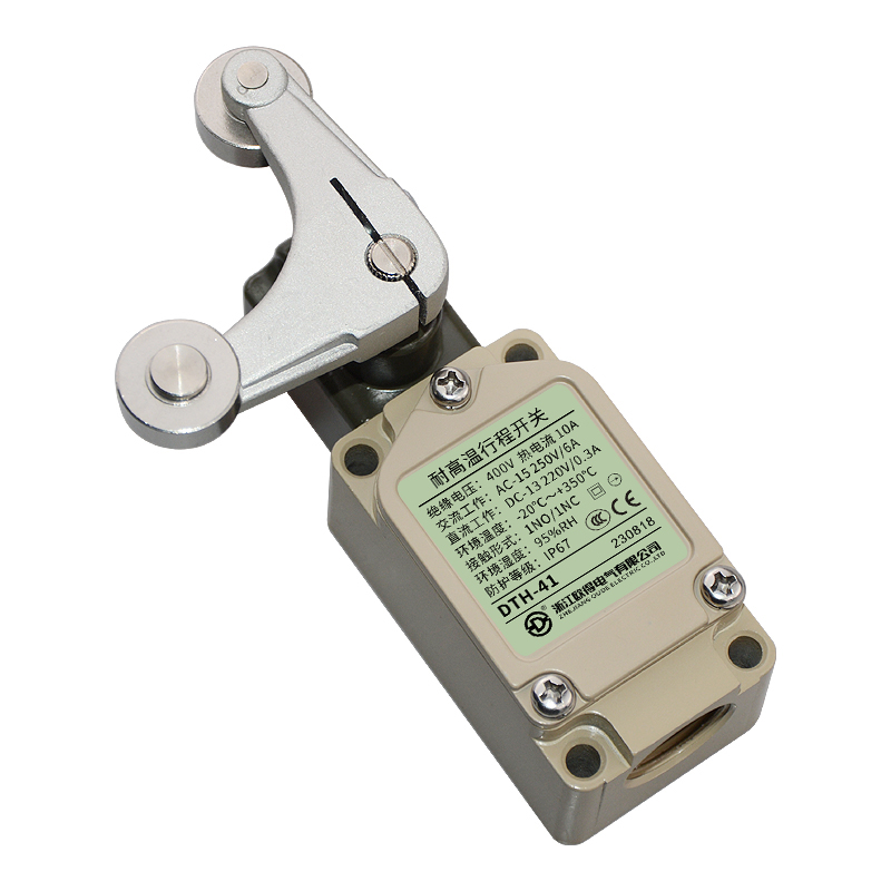 • DTH-41耐高溫行程開關(guān),雙輪·叉式·擺桿·鎖定型、通用直立型,長壽命2回路限位開關(guān)。適用于鋼鐵、焦化、電廠、紡織、醫(yī)療、化工、鋁材、塑料、玻璃、輪胎等高溫加工機械設(shè)備,作位移電路通斷信號檢測控制。