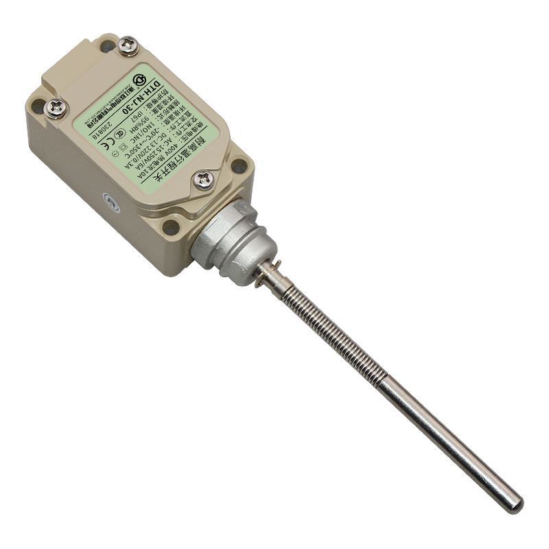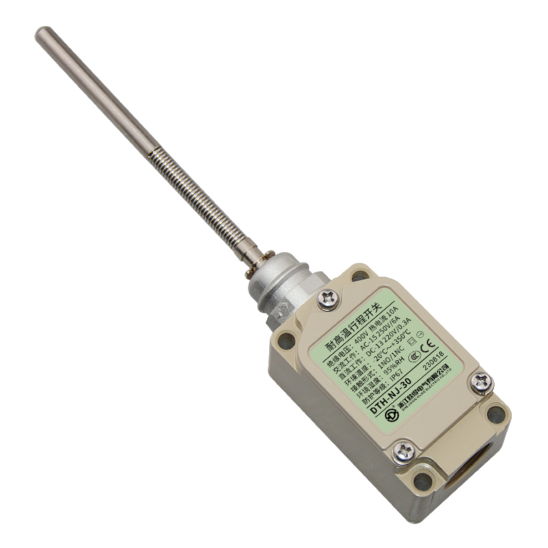 • DTH-NJ-30耐高溫行程開關(guān),頂端實心棒·盤簧棒型,萬向式、通用直立型,長壽命2回路限位開關(guān)。適用于鋼鐵、焦化、電廠、紡織、醫(yī)療、化工、鋁材、塑料、玻璃、輪胎等高溫加工機械設(shè)備,作位移電路通斷信號檢測控制。