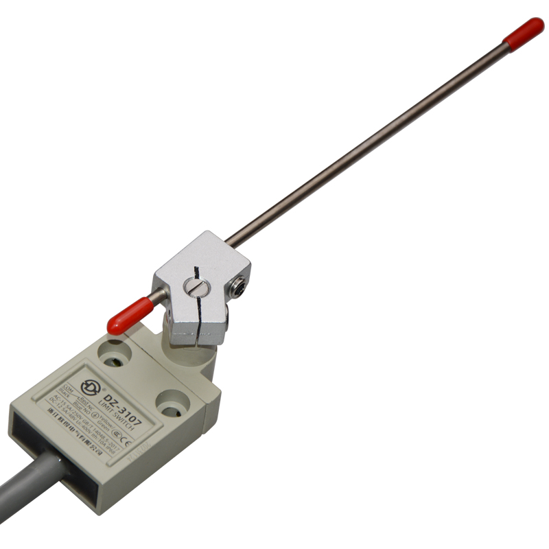 • DZ-3107防水行程開關(guān),可調(diào)式·棒式·擺桿型,通用直立型,小型、薄形、IP68防護等級,樹脂與耐油軟線融合牢固,高度密封性兼具的緊湊型限位開關(guān)。適用于積水、潮濕環(huán)境下的機械設(shè)備,作位移電路通斷信號檢測控制。