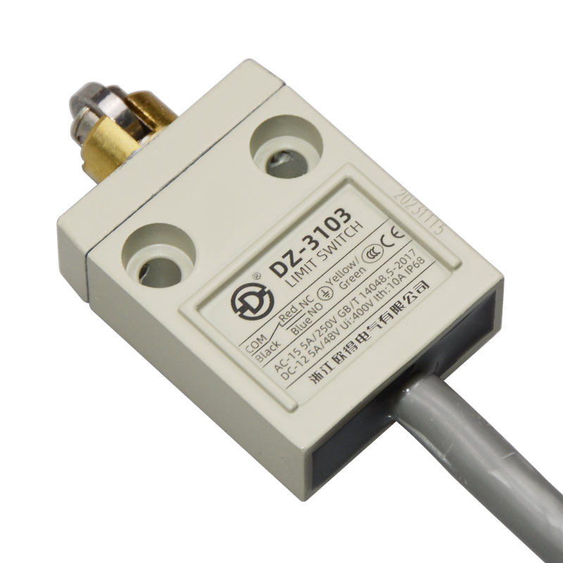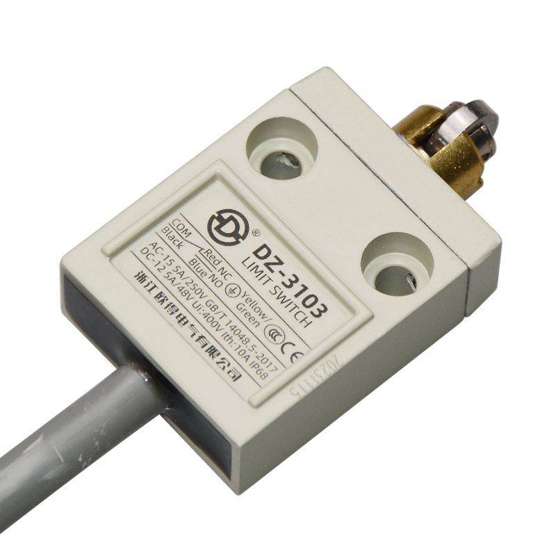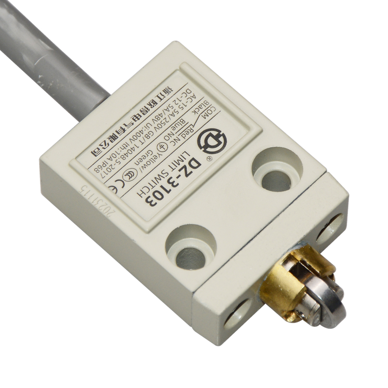 • DZ-3103防水行程開(kāi)關(guān),橫向滾輪柱塞式,通用直立型,小型、薄形、IP68防護(hù)等級(jí),樹(shù)脂與耐油軟線融合牢固,高度密封性兼具的緊湊型限位開(kāi)關(guān)。適用于積水、潮濕環(huán)境下的機(jī)械設(shè)備,作位移電路通斷信號(hào)檢測(cè)控制。