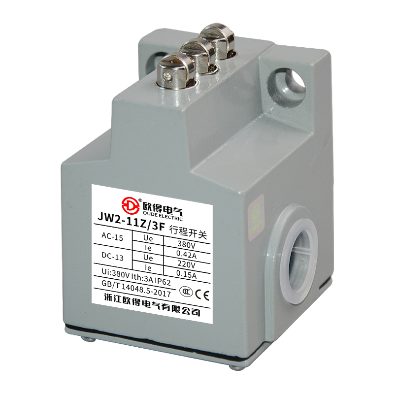 • 防水行程開關(guān)(JW2-11Z/3F),三組滾輪柱塞直動式,高度密封性。絕緣電壓380伏,發(fā)熱電流3安培,交流工作電壓380伏、電流0.42安培,直流工作電壓220伏、電流0.15安培,防護(hù)等級IP62。