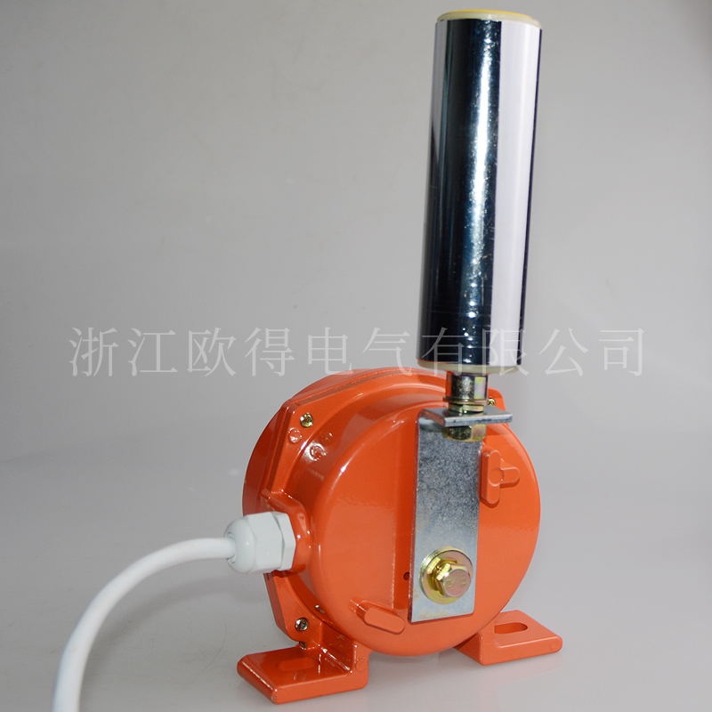 兩級(jí)跑偏開關(guān)(HFKPT1-20-30),絕緣電壓400伏,發(fā)熱電流10安培,工作電壓電流交流380伏、2.6安培,直流220伏、0.4安培,防護(hù)等級(jí)IP65。主要用于輸送機(jī)膠帶跑偏檢測(cè),防止膠帶跑偏而造成物料溢出等故障。當(dāng)膠帶發(fā)生跑偏時(shí),膠帶邊緣帶動(dòng)立棍旋轉(zhuǎn)并擠壓立棍使之傾斜。若立棍傾斜大于一級(jí)動(dòng)作角度時(shí),開關(guān)便發(fā)出一組信號(hào)用于警告,若立棍傾斜大于二級(jí)動(dòng)作角度時(shí),開關(guān)便發(fā)出另一組信號(hào)用于停機(jī)。膠帶機(jī)恢復(fù)正常運(yùn)行后,立棍自動(dòng)復(fù)位。